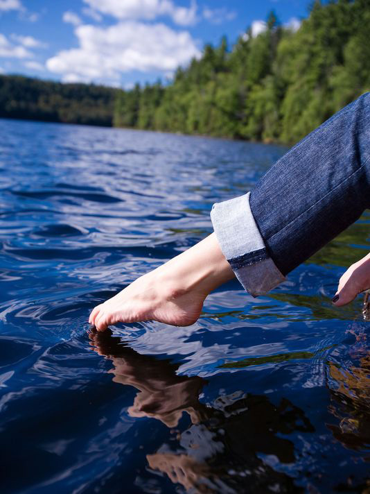 Dipped foot shows 'toe' goes 1st and bends away from sole.