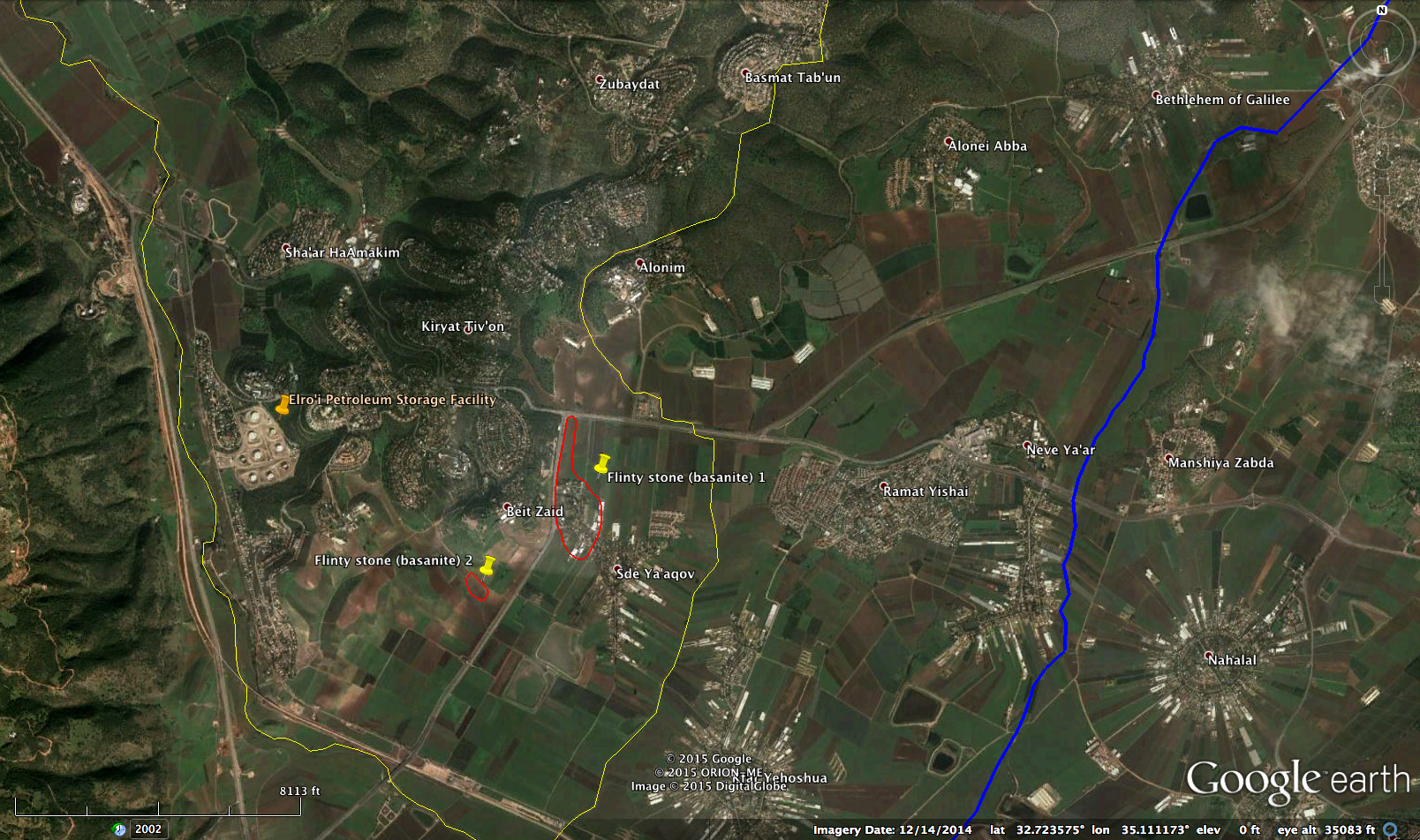 Fault path from Asher's 'toe' to Afek oil wells