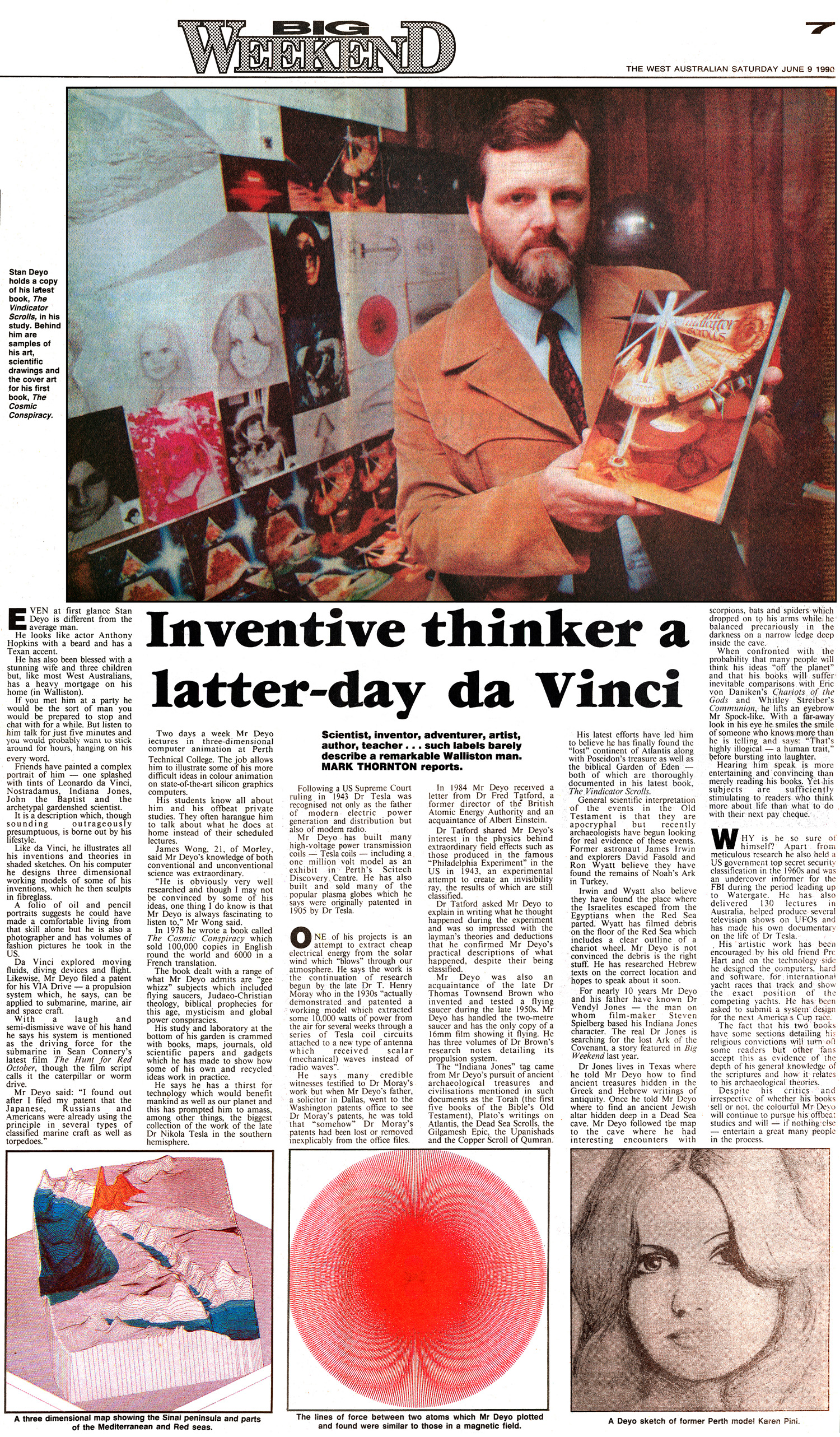 Stan's main love is still advanced propulsion and "free" energy research which took him to Australia in '71 to work on these systems as part of a global project under the direction of such men as Dr. Edward Teller and Dr Andrei Sakharov.